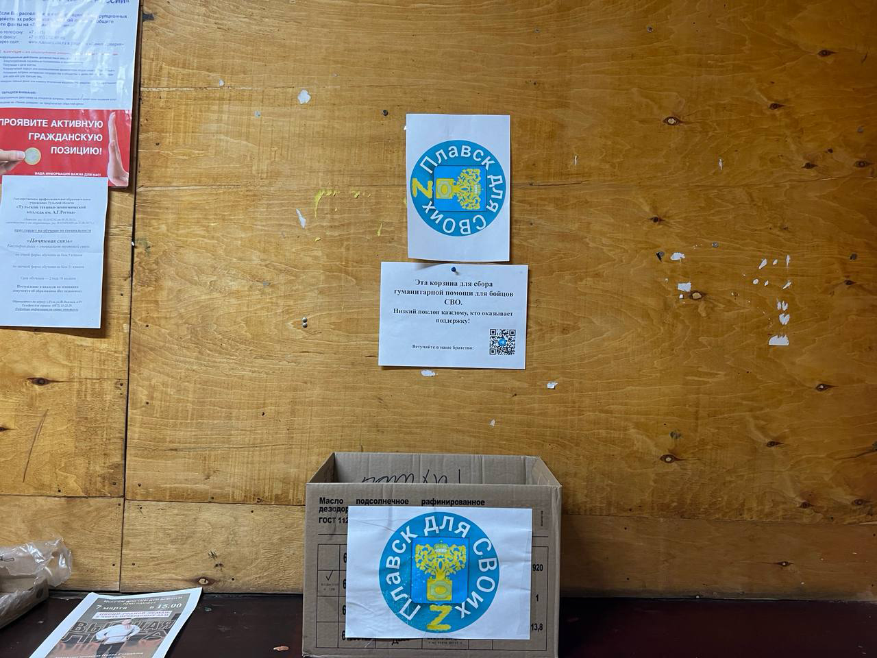В почтовом отделении деревни Заречье Плавского района установили коробку для сбора гуманитарной помощи участникам специальной военной операции.