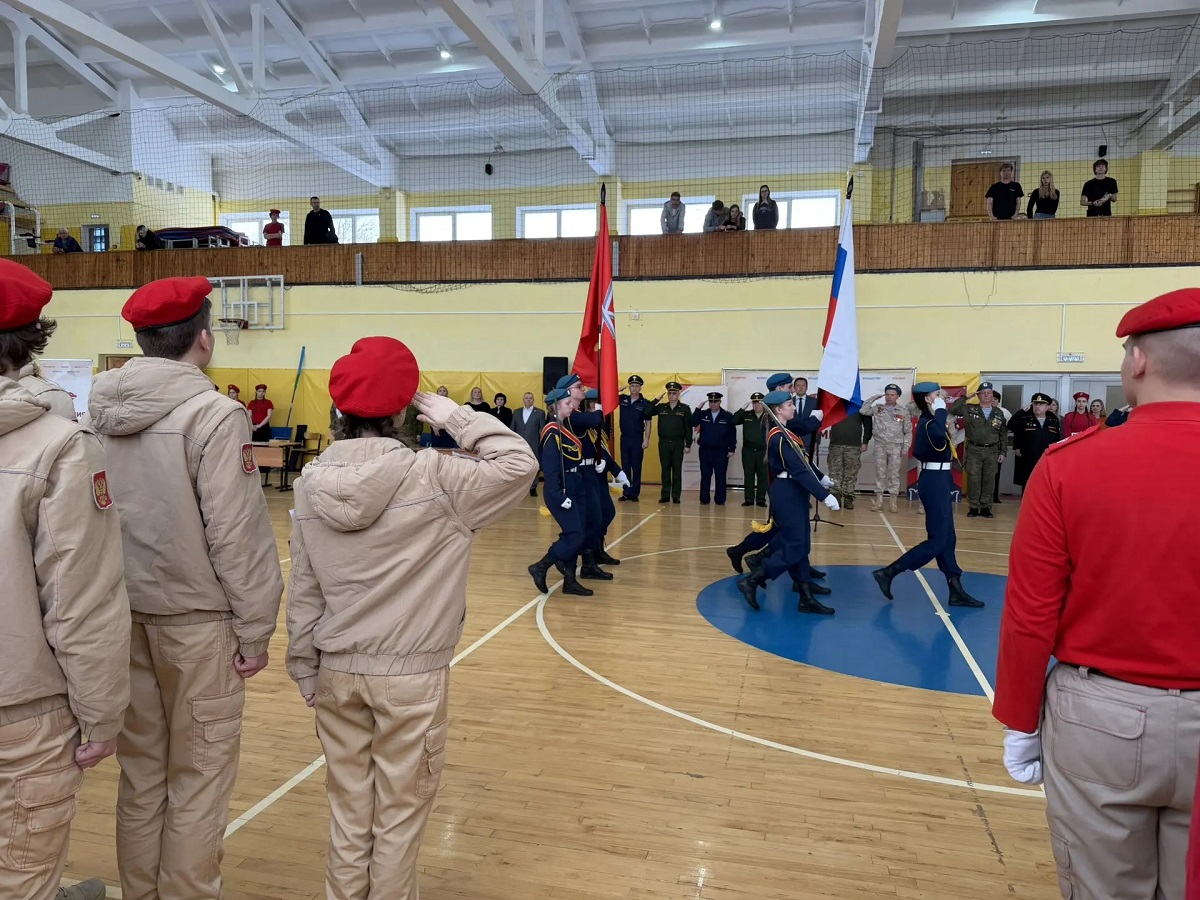 Смотр начался с торжественного выноса знамени и исполнения Гимна Российской Федерации. А дальше в центр зала стройными рядами поочередно начали выходить команды из разных муниципалитетов Тульской области.