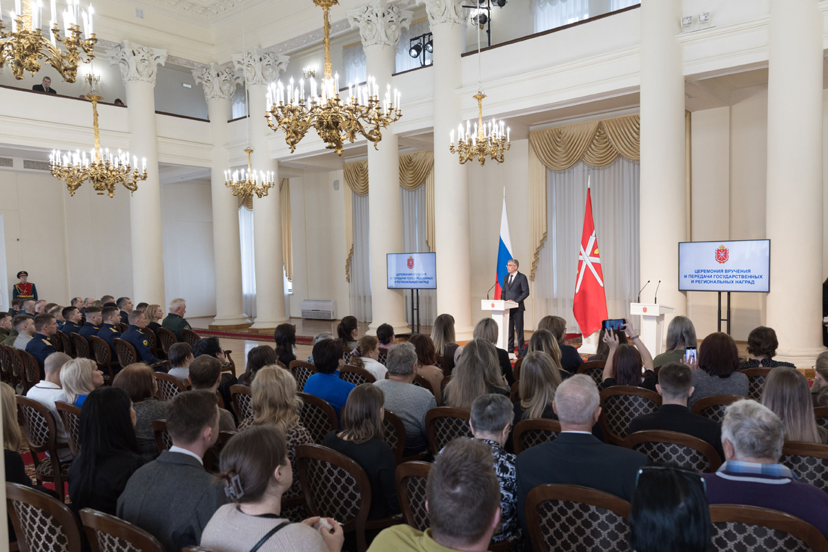 В колонном зале Дома Дворянского собрания губернатор Дмитрий Миляев принял церемонии вручения наград.