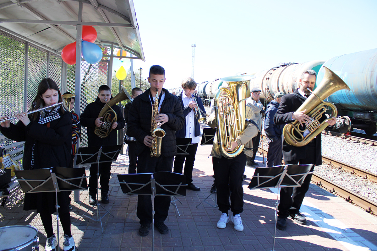 На перроне играл духовой оркестр Веневской детской школы искусств.