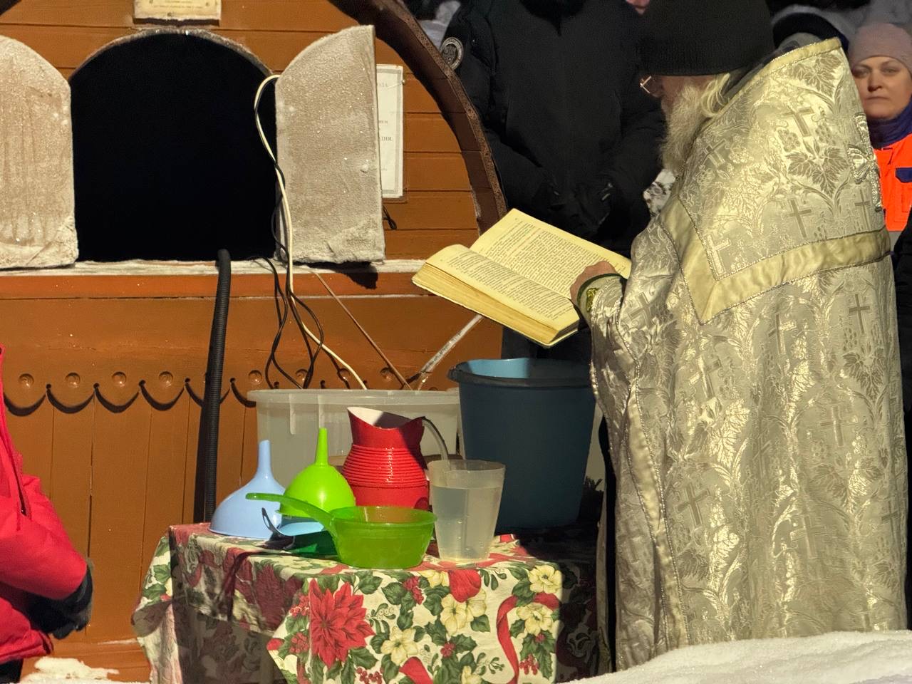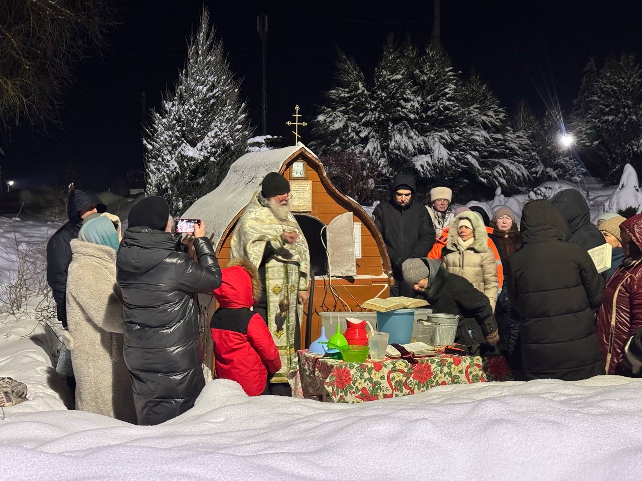 На Монастырском колодце в Веневе по традиции был отслужен молебен с водосвятием в честь праздника. Службу провел настоятель Богоявленского храма протоиерей Олег Алейников. А затем щедро окропил водой всех пришедших.